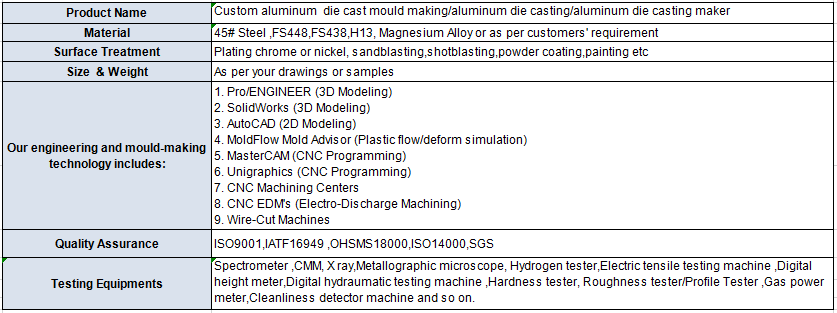 Custom aluminum die cast mould making/aluminum die casting/aluminum die casting maker